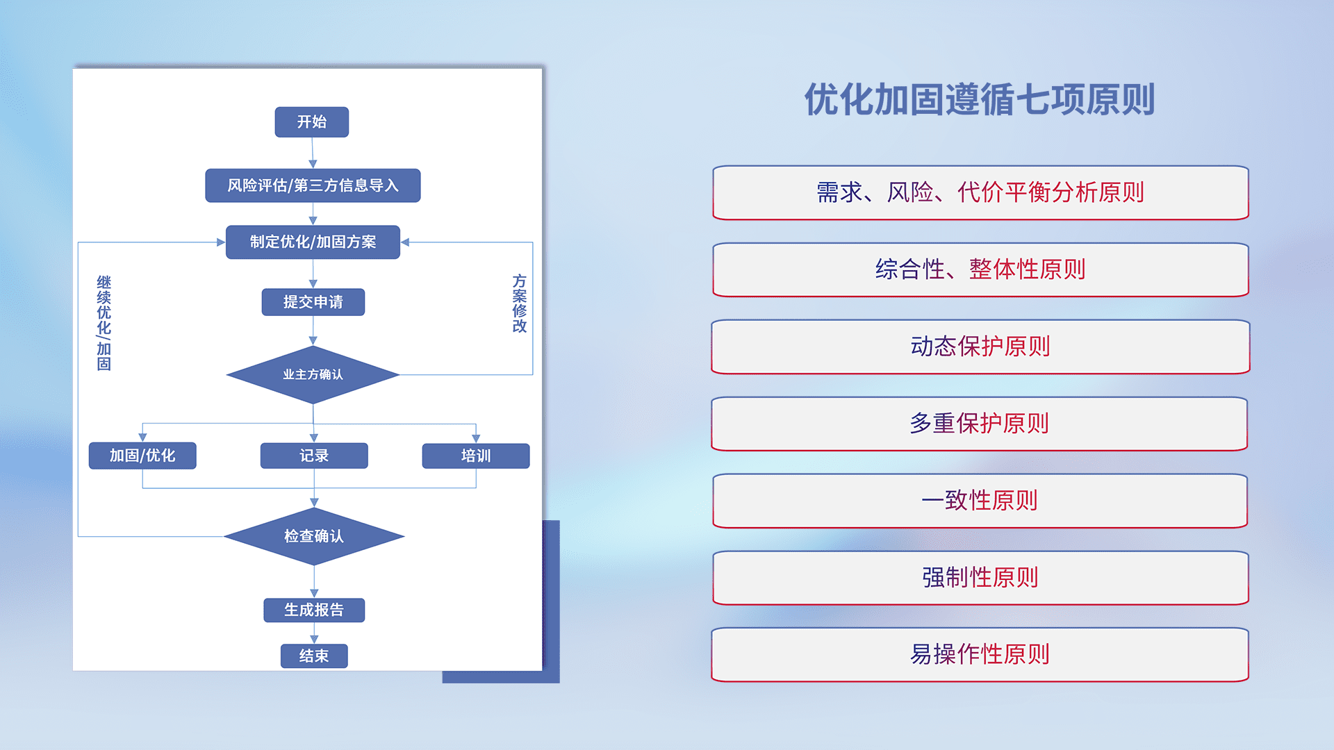 最大程度利用现有资产,,,对评估发现的问题进行封堵与整改,,,,防止漏洞被利用,,,,提升整体网络安全性,,,,为客户带来高标准的优化加固服务。。。。