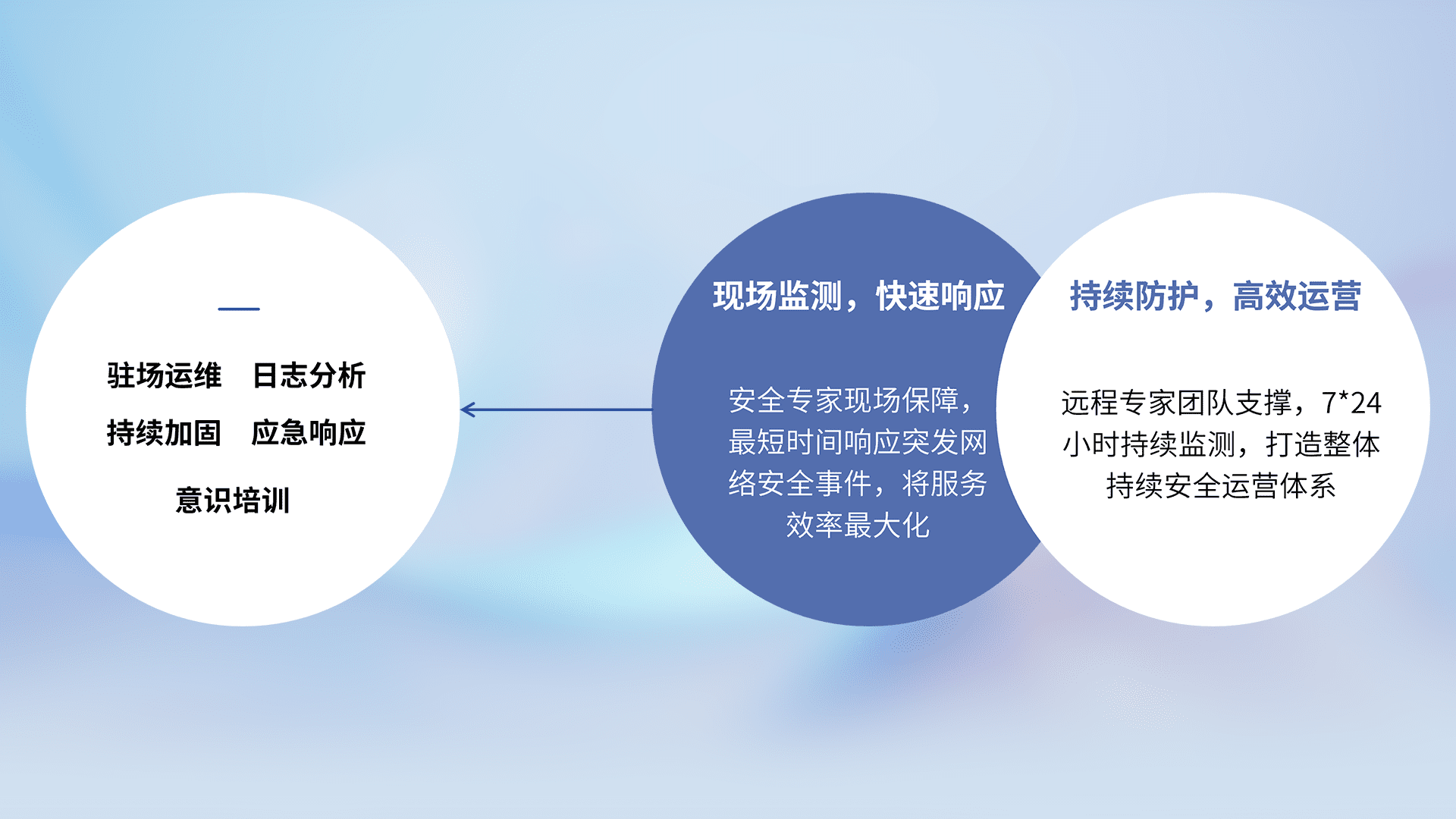 针对客户行业特性,,,,提供专属的一站式安全管理服务,,,,帮助客户全面感知网络空间威胁,,,通过安全专家的线上、、、、线下防护支持,,实现风险闭环,,,将安全保障常态化,,为客户打造常态化安全运维运营服务。。。